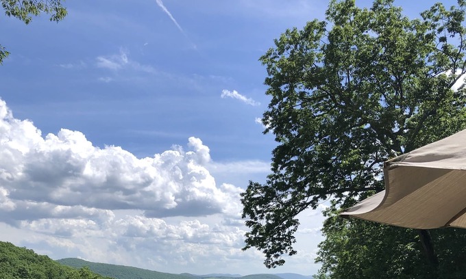 Beautiful post and beam home with spacious deck overlooking private pool and spectacular, pristine view over 5 houseless miles and over the Hudson River. This home is perfect for singles, couples or families. Relax around the pool by yourself, take in the view from the deck or watch your children and friends enjoy the chance to run in the grass, swim, and have a great time. Owner can install a guard railing under the existing railing if needed for small children.