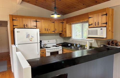 This cottage is nestled on a treed lot in a cottage neighbourhood with two decks, one on the back of the cottage and one on the side. There is a propane BBQ, and a firepit for outdoor entertainment. Parking for 4 vehicles.