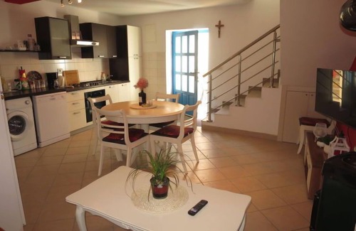 3-room semi-detached house 60 m2 on 2 levels. Living/dining room with 1 sofabed and satellite TV (flat screen), air conditioning. Open kitchen (1 hot plate, oven, dishwasher, 3 gas rings, toaster, kettle, freezer, electric coffee machine). Upper floor: 1 room with 1 french bed (160 cm, length 200 cm). 1 room with 1 double bed (160 cm, length 200 cm). Shower/WC. No heating option. Facilities: Internet (WiFi, free).