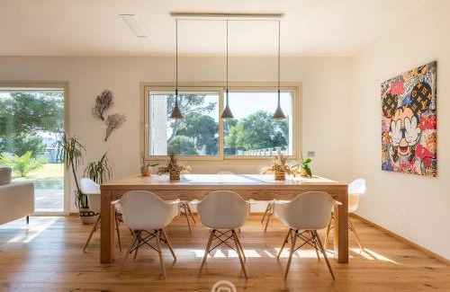 Featuring a garden, Golden Dunes Villa offers accommodations in Porto Pino. This property offers access to a balcony, free private parking, and free Wifi. The accommodation provides airport transfers, while a car rental service is also available. Providing a terrace and garden views, the spacious villa includes 4 bedrooms, a living room, flat-screen TV, an equipped kitchen, and 5 bathrooms with a bidet and a shower. The comfortable, air-conditioned accommodation also comes with soundproofing and a fireplace. The property has an outdoor dining area. During warmer months, you can make use of the barbecue facilities and eat on the private patio. For guests with children, the villa features outdoor play equipment. A bicycle rental service and a private beach area are provided at Golden Dunes Villa. Spiaggia di Porto Pineddu is 1.5 miles from the accommodation, while Spiaggia Nautica 2000 is 1.5 miles away. Cagliari Elmas Airport is 48 miles from the property.