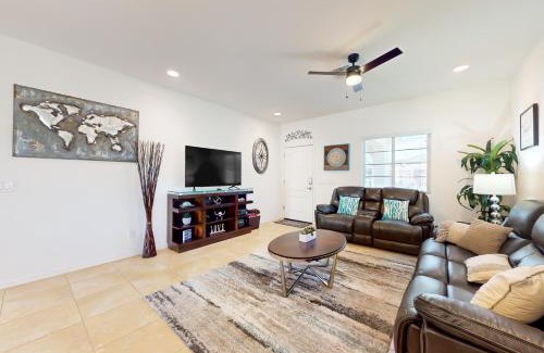 27 miles from Copper Square in Buckeye, Golden Marigold Sanctuary offers accommodations with access to spa facilities. Guests can benefit from a patio and an outdoor fireplace. The vacation home has an outdoor pool and a hot tub. Providing access to a terrace with pool views, the spacious vacation home consists of 3 bedrooms. The air-conditioned vacation home also features a flat-screen TV, a fully equipped kitchen with a dishwasher, a seating area, washing machine, and 2 bathrooms with a hot tub, a bath, and a shower. The property has an outdoor dining area. Guests are welcome to eat at the on-site restaurant. Guests at the vacation home will be able to enjoy activities in and around Buckeye, like cycling. A children's playground is also available for guests at Golden Marigold Sanctuary. Phoenix Convention Center is 27 miles from the accommodation, while State Farm Stadium is 20 miles from the property. Phoenix Sky Harbor International Airport is 30 miles away.