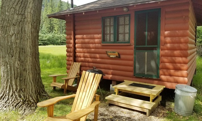 Welcome to Golden West. Golden West is considered a two person cabin and as the name implies sits on the west end of our property. Golden West is set up like a studio apartment and it has a queen bed, a bathroom with shower, kitchenette with stove, mini fridge and microwave, it also includes all the pots, pans, and dishes you will need, a gas fireplace for heat, Broadband WIFI all linens and utensils.