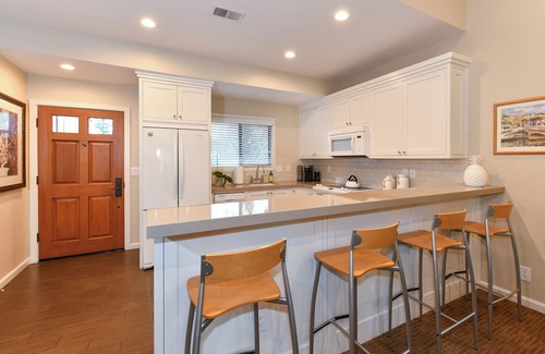 This stunning, two primary suites, view condo is located in the heart of the Napa Valley; an end unit on the South course of the Silverado Resort, and overlooking the 6th hole. Relax with a glass of wine on the wrap around deck surrounded by mature oak trees, this home is tastefully designed with luxury touches including bedding, slippers, and bathrobes, and is perfect for two couples in town to enjoy golf, play tennis or pickle ball, or take in all that the wine country has to offer. Oak Creek East subdivision includes a large, oversized pool, as well as a smaller pool, both open from May through October, and are perfect for cooling down on a warm day. What I love about this home is the spacious living areas, oversized en suite bedrooms, 65" Sony Frame TV, and gas fireplace, making this a cozy get-away year around. The kitchen is fully equipped for home cooking and includes a gas bbq for outdoor enjoyment, as well as a washer and dryer in unit, air conditioning, patio seating and dining, beach towels and patio umbrellas. The Silverado Spa is open to the public for a daily fee and has a full service nail/hair salon, as well as spa services and gymnasium. The Silverado Mansion Bar is fabulous for music, cocktails overlooking the golf course grounds and exquisite landscaping. All restaurants, bars, and deli's are open to guests staying at Oak Creek East.