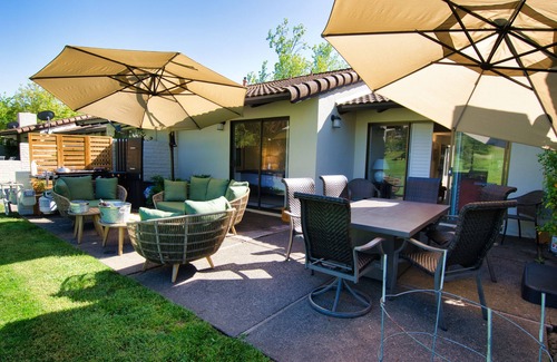 This large vaulted ceiling Villa is located in the middle of the the North Course's 5th hole in the Fairways Silverado Resort and Spa. The north course is where the PGA Tour is played yearly. Enjoy duel suite bedrooms and baths with two private patios for morning and afternoon sun exposure and views of 5th fairway and green. Villa is set off the course for privacy and shelter from players. Private heated pool is available during spring and summer. Full Kitchen with all needed cookware and cutlery. The Silverado Resort is available for public access and dinning. Enjoy breakfast café coffee at the market, outdoor lunch or dinner at the grill or Mansion. Market has a deli, bottled wine and other adult beverages. An ideal location to visit all of Napa and the Silverado Trail or stay on site for seclusion.