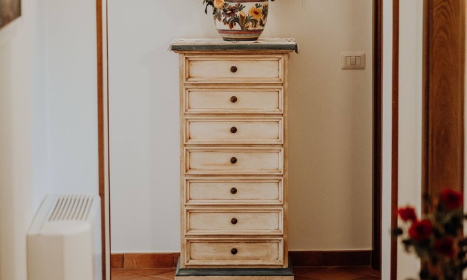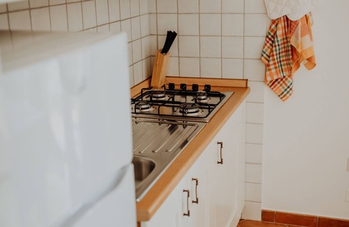 The apartment with a double bedroom, kitchen / living room with handcrafted opium sofa and orthopedic mattress, internal services in Vietri ceramic, laundry room and balcony overlooking the sea is finely furnished and with attention to the smallest details.