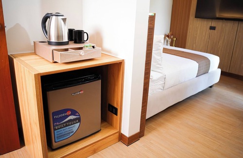 GeneralSquare meters - 20, Number of living rooms 0, Ping - 6.0, Mini-fridge, Number of bedrooms - 0, Television, Bed count minimum 1, Bed count maximum 1, Square feet - 215.3, City view, Flat-panel TV |