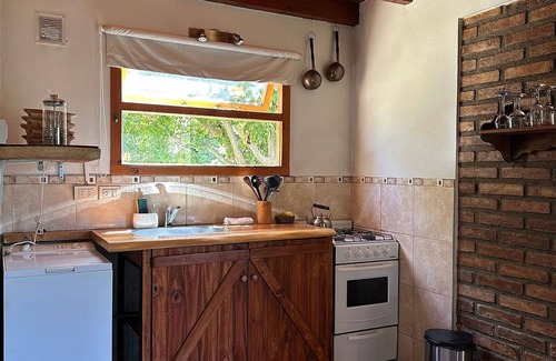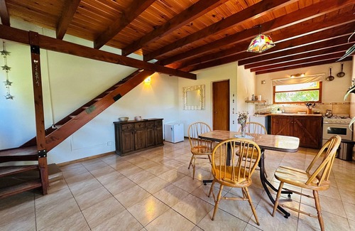 House with patio one block from the lake. It has a room with a double bed and another with a single bed. Living room. Bathroom with shower and bathtub Full kitchen Wifi TV Board games Sheets, towels and blankets for the stay. Large spaces for a restful rest