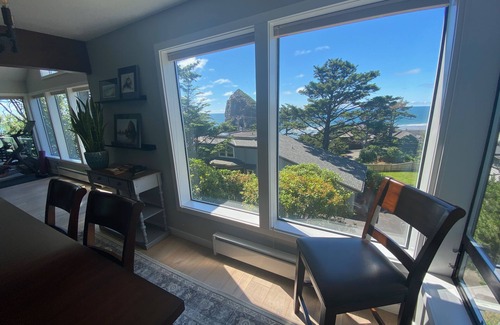You can watch the puffins learn to fly off of Haystack Rock, the bald eagles circling, and even the whales breaching the surface, all from your bed! Of course you can see all this from the living and dining rooms as well.