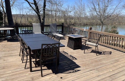 Outdoor living at its best when you walk out on this huge back deck overlooking beautiful Current River. Outdoor seating with a gas fire pit. Charcoal grill for those burgers and hotdogs.