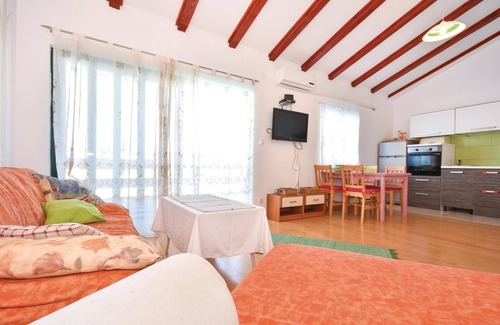 This beautifully furnished apartment in the beautiful village of Stomorska on the island of Solta consists of two bedrooms, a bathroom and a kitchen with living room. At your disposal are also a terrace and a balcony with a beautiful view of the bay. On the ground floor of the building there is a restaurant where the guests of this apartment can get a discount and for stays longer than 14 days also a free dinner. As the island of Solta has a good ferry connection to the city of Split, we recommend you to discover the numerous sights of this historical city.