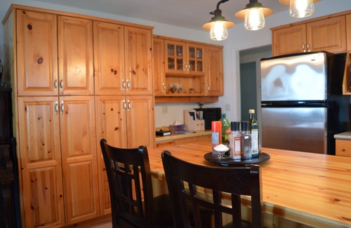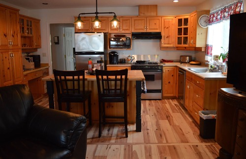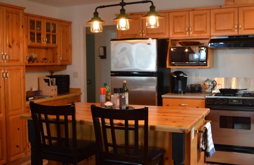 The spacious kitchen is fully loaded, with seating at the island/bar counter. It has all of the appliances and conveniences you could ever need (and too many to list), including a K-cup coffee maker with complimentary coffee. Rest assured, in this kitchen, you will be provided with all items you could ever want or need. So if you want to cook or entertain, we’ve got you covered. It’s ideal for longer stays, with all the comforts of your kitchen at home.