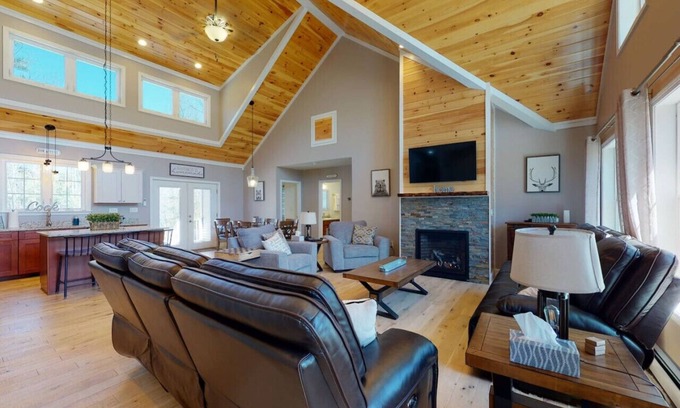 Impressive Rustic Modern Home with Hot Tub and full Game Rooml. Our home is set off Westside Rd in a Central Beautiful location. Wind down in the hot tub admiring the peaceful serene location. Make lots of family memories in the game room or just relax in the spacious open floor layout sitting by the fireplace. Master Suite features sleep number bed for the perfect sleep and soaking tub to relax. This home is newly furnished and has fully stocked kitchen come enjoy our home.