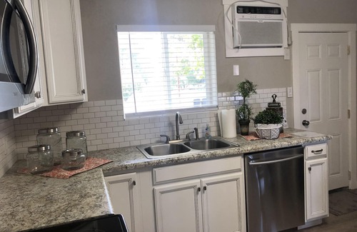 We just finished up our fully renovated 1200 square foot three bedroom home. It boasts all new floorings, paint, cabinets, tile and appliances. Everything is new but the original lumber in the walls. The master bedroom offers a Queen bed and room for our blow up mattress. The second bedroom also offers a queen bed and room for our blow up mattress. The third bedroom offer a bunk bed with a full size mattress on the bottom and a twin on the top. Enjoy our comfy furniture and trendy decor while staying in our fun little town. We are in an area that is the cross roads to just about everything. Our home offers card games, board games, wifi, and is just a few houses away from the elementary school playground as well as our recreation center. The kitchen is stocked with all the cooking pans and utensils you will need, as well as coffee.