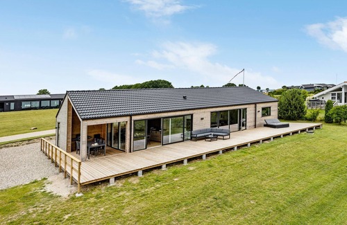 Your high-quality holiday home offers you space for relaxation, play and enjoyment, with far-reaching views over green hills to the water. Enjoy the open-plan design with floor-to-ceiling windows that bring plenty of light and nature into the house. Relax in the modern eat-in kitchen, cook together at the kitchen island and enjoy your meals at the large dining table with a view. Use the activity room with pool table and other games for sociable afternoons. Treat yourself to a relaxing break in the bathroom, which is equipped with a whirlpool.