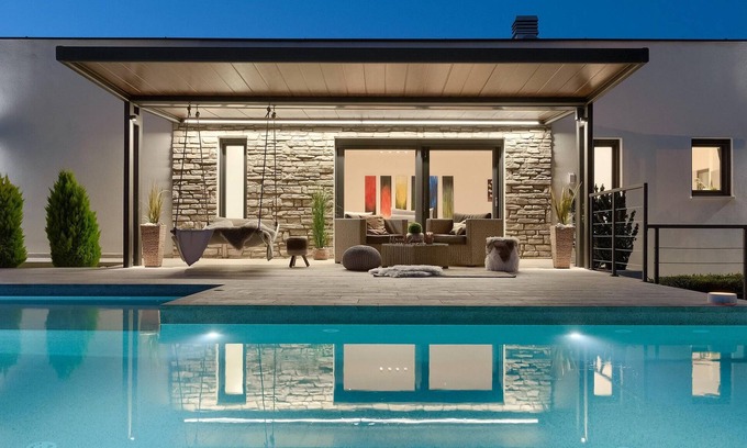Best-rates for the Gorgeous home in Medulin starts from $514 per night with includes TV, Private Pool, Wellness Facilities, Fireplace/Heating, Internet, Kitchen, Parking, Oceanfront, Laundry, View, Ocean View, Barbecue/Outdoor Cooking, Security/Safety, Entertainment, Child Friendly, Pool With all other amenities. Float Homes offers a wide range of floating homes, houseboats, and water chalets, ensuring each traveler finds their ideal water escape, whether planning a water getaway, a family vacation, or a pet-friendly retreat with the whole group.