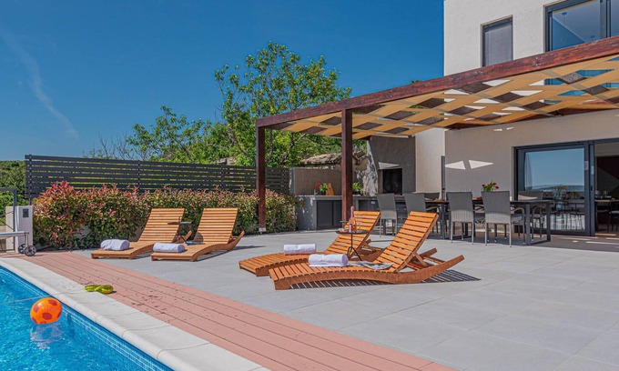 Welcome to this inviting property. You will be staying not far from the enchanting Dalmatian coastline, in a spacious house best suited for families with children. Look forward to entering your beautiful vacation home. Here you can be delighted by the cozy outdoor area with pool, sun terrace and wonderful sitting area in the semi-shade with lots of greenery all around. Here is definitely plenty of space to unfold and you can sit every evening in the fresh, balmy air and enjoy the Mediterranean atmosphere. You already have the coast in view from here in the best possible way.