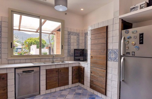 A pleasant walk from the sea welcomes you this spacious vacation accommodation with two buildings. Here you have space for several family or an extended family, but also looking for your privacy in the two houses. Enjoy relaxing in the comfortable rooms with beautiful tiled floors and come to rest while cooking, playing and relaxing. The beautiful garden offers you several terraces to linger, lie in the sun with a book or take a dip in the large pool.