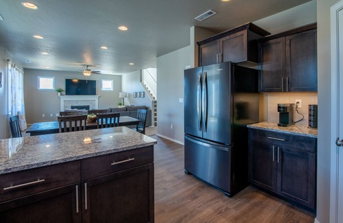 Kitchen: Beautiful kitchen with stainless steel appliances, oven/stove, refrigerator/freezer, dishwasher, pantry, granite countertops, and plenty of cookware and dishware to service 10 people as well as kid friendly dishes.