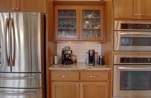 There is plenty of seating for meals at both the kitchen table, kitchen bar, and dining room table. The kitchen is equipped with a 5-burner gas stove, convection oven, microwave oven, and instant hot water. On the deck is a clean BBQ for all your grilling needs. Also on the main floor is a mudroom with a full-sized washer/dryer, 2 half bathrooms, and the Master Suite. Quiet and private the Master Suite features a King size bed and cozy sitting area. The quiet and private Master Suite bathroom has double sinks, a large tub, and a spectacular steam shower to relax your achy muscles after an epic adventure-filled day! Stairs from the Master lead to a sparkling clean hot tub. Relax at day's end and enjoy the night sky with almost no light pollution. GORGEOUS!
