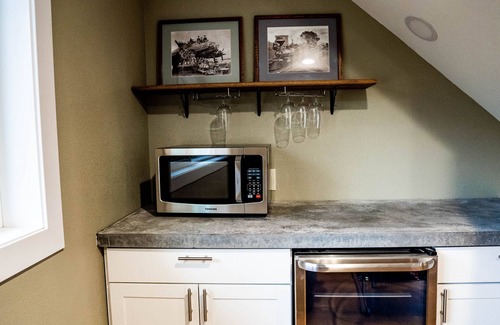 Welcome to Grey Havens, a unique and peaceful house in Oregon's wine country, owned and personally managed by a local couple. We are less than a half mile to beautiful downtown McMinnville, and just blocks from the north end of historic City Park. Enjoy our tasteful but fun decor and architecture, our comfy common areas, private backyard (with hot tub, fire pit, and several decks), and our well-appointed kitchen. Our house is perfect for anything from a wine-themed vacation with friends to a family trip.