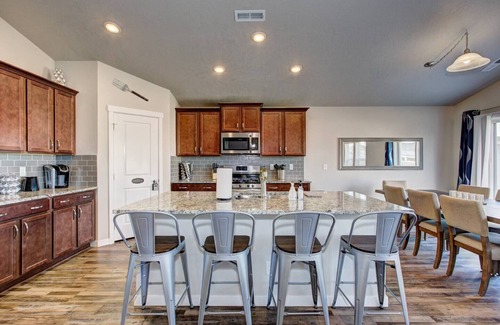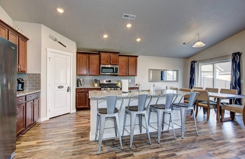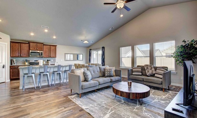 In the beautiful, safe walkable community of Star, Idaho! Feel welcomed in our wonderfully designed, new construction home with a fun refreshed style close to everything. 5 minute walk to Albertsons with Starbucks, a 20-minute walk to downtown Star, and very close to grocery/liquor stores, shopping, hospitals, and lots of entertainment. You will truly feel at your home away from home!!