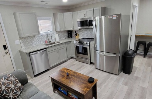 Kitchen: Stainless electric stove/oven | Refrigerator | Microwave | Dishwasher | Toaster | Drip style coffee pot | Cooking basics | Dishware & flatware | Pots & pans