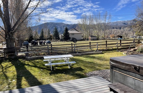This home with gorgeous mountain and horse pasture views is the perfect location to relax when you visit the Aspen Valley - just 30 minutes from Snowmass or Aspen. Located in Willits, right near Whole foods you can easily walk or drive to Starbucks or several restaurants, or choose to cook in the chef equipped kitchen with all the tools and appliances you need. Relax in the brand new salt water hot tub or enjoy a Netflix session on the Smart TV. 4 separate bedrooms and bonus trundle bed/ couch for singles
