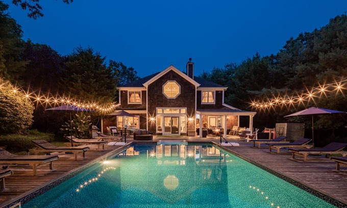 Its two and a half acres of secluded woodlands, surrounded by private reserve, provide a unique setting and ultimate privacy for your summer rentals, family gatherings and intimate celebrations. From its luxurious Hampton design to appliances, heated pool, hot tub, hardwood floors, and wood-burning fireplace, make this house a home. Easy access to beaches, restaurants, and Hampton's nightlife are just outside your door.