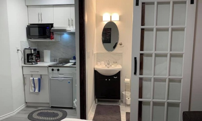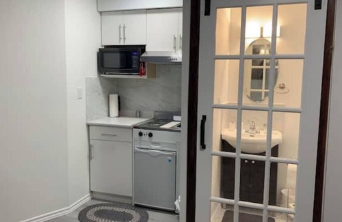 It's a designed modern 1-BR ensuite with kitchenette for guest convenience