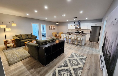 Relax, feel at home and enjoy the spaciousness without having to book 2 hotel rooms. It has a large open plan dining/kitchen/living area and a full bathroom! You will feel right at home in this large (1200 sqft) apartment.