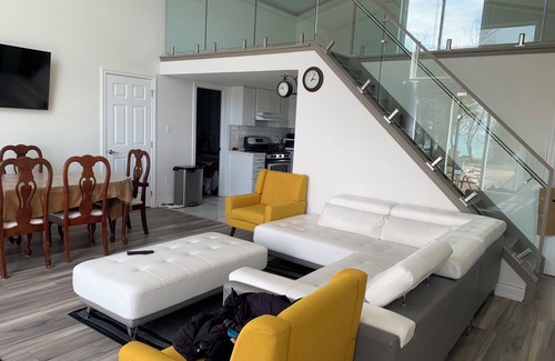 4 bedrooms . Panoramic view of Lake Huron. Lots of parking. Hot tub. Free WIFI. Full Kitchen and new fridge. Dining table and chairs. Access to a beach shared by 6 houses. pets are permitted. July and August time we only do Mon to Sunday. June min 3 nights. Price for 6 people max. For extra people please give us details. Also pet details is required before booking.