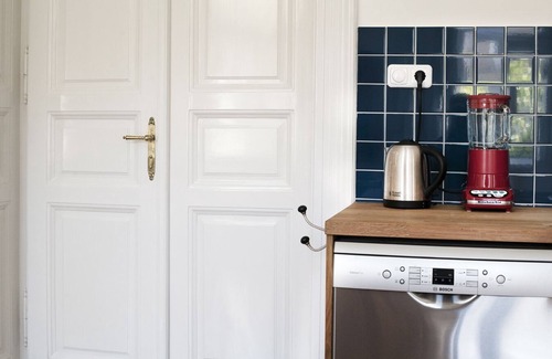 The elevator brings you up to one of the last floor. The apartment got big windows and is filled with light. We added an original Italian espresso maker to it, to provide a perfect start for your day in Budapest as well as a sophisticated sound system from Geneva so you can simply enjoy a unique living experience. Frank & family.