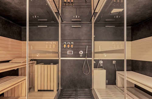 An outdoor pool and a children's pool are on site. Other recreational amenities include a health club and a sauna.