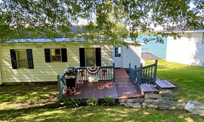 This two bedroom, one bath home is located on Grand Lake across from Grand Island and has the best views on the lake. 1 full size bed, 1 queen size bed and also a queen pull out sofa sleeper. You get morning sunrises and evening sunsets all while sitting on a two tier deck. The upper deck has a 7’ bar table with seating for 6. Go kayaking, soak up the sun, walk the trails at many near by nature areas. Cook out and enjoy dinners out on two patio areas. If you enjoy sight seeing, there is plenty to see. Presque Isle has two lighthouses, a beautiful harbor, many wonderful restaurants and shops. We are located only 18 miles from Alpena!