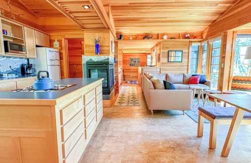 Grand Marais House of Light is a custom home located in the heart of Grand Marais, Minnesota. With every detail crafted by the area’s top home builders, with sustainable practices in mind such as cork floors, this light wood-paneled home creates a bright and airy feeling. Grand Marais House of Light has large windows that allow in natural light while the foliage and fencing surrounding the home provide solitude and privacy. The home features a beautiful open living area with a kitchen, dining room, and living room. The two bedrooms share a beautifully designed custom bathroom. Although right in the middle of town, this home has been carefully positioned on the property to give you the utmost amount of privacy for an in-town home. Allergy Warning: Although this home does not allow guests to bring pets, the owner has a dog. We cannot guarantee a dander-free home. Bedrooms/Bed Sizes Bedroom 1 - Queen Bed Bedroom 2 - Twin Bed Bathroom Shower/ Tub Area Information Just two blocks from Grand Marais Harbor, you are easy walking distance to downtown Grand Marais art galleries, shopping, and sites, while being centrally located to many wilderness outdoor activities available on the North Shore. Only a few miles away are state parks, beaches, the Gunflint Trail, hiking, canoeing, kayaking, paddle boarding, biking, cross-country skiing, snowmobiling trails, and so much more. You will find adventure year-round in Grand Marais.