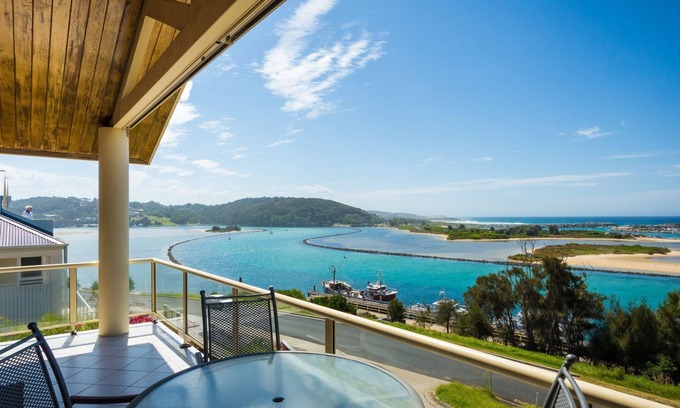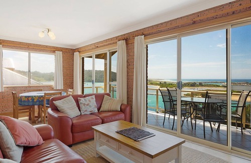 Unsurpassed water views sweeping from the bay to the ocean from this top floor unit in a complex of four. Two bedrooms, two bathrooms, open plan kitchen and lounge looking out on the absolute waterfront of Narooma.