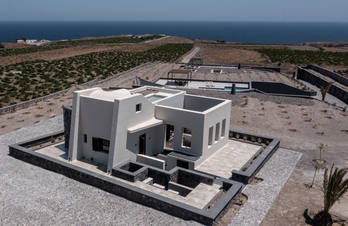 Welcome to Ardor Exclusive Villas, a private haven featuring three carefully crafted, luxurious residences set on a six-acre parcel, bookable as single units or a whole property for larger groups. Nestled on the northeastern fringe of Santorini, just beyond Vourvoulos village, these villas offer a captivating panorama of the Aegean Sea and the idyllic Anafi island.