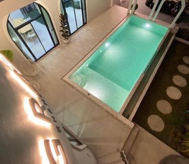 Grandiva Khanom Pool Villa แกรนดิวา ขนอม พูลวิลล่า is located in Khanom, just a 18-minute walk from Thong Node Beach and 1.4 miles from Khwaeng Phao Beach. This property offers access to a balcony, free private parking, and free Wifi. Donsak Ferry Terminal is 11 miles from the villa. Offering a terrace and garden views, the villa includes 3 bedrooms, a living room, flat-screen TV, an equipped kitchen, and 3 bathrooms with a hot tub. The accommodation is non-smoking. The nearest airport is Samui International Airport, 44 miles from the villa.