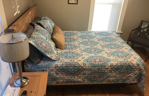 Room #5, located on the 2nd floor, to the right of the stairs, features a full bed and private bath, perfect for singles, couples, or kids.