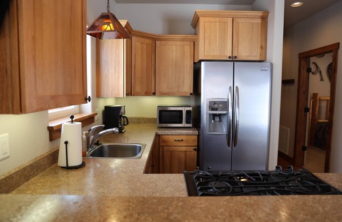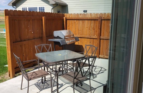 Welcome to Cowboy Retreat! Kick off your boots at this well-designed unit. Located just under 10 minutes from downtown Cody, you will see exceptional views of Heart Mountain, Cedar Mountain, Rattlesnake, Carter Mountain, and more! The interior has a spacious living and dining area and a full sized kitchen. The bedroom has a walk-in closet, beautiful wood furniture and an attached bathroom with a large walk in shower. Sit back and enjoy the fine cowboy details that adorn the walls throughout the rental! There is also a stackable washer and dryer for guest use. Out the patio doors you will find a private seating area with outdoor furniture and a gas BBQ grill. You can enjoy sunsets from the back patio or even from inside because of the large windows throughout the unit! Wildlife such as owls, hawks, pheasants and more have been seen passing through the area. Depending on the time of year you visit you may be able to see cows in the field behind the house.