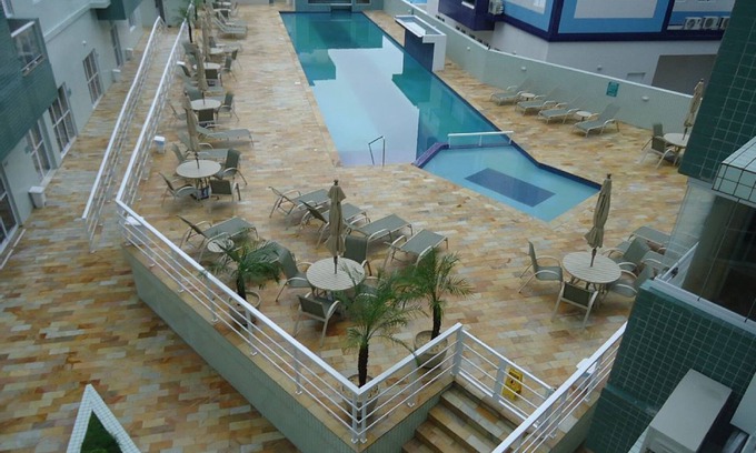Yes, this Praia Grande apartment has a swimming pool. Check the Facility Overview section for details about the pool and other available facilities.