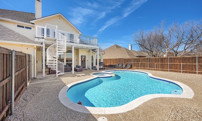 Your cozy getaway awaits in Rowlett at this enchanting house. With 5 bedrooms including a king bed, futon, queen beds, and a twin bed, this tranquil retreat offers plenty of space for guests to unwind. Enjoy the jetted bathtub, hair dryer, and other amenities provided in the 4 bathrooms. Our place will help you feel at home while you're traveling in Rowlett.