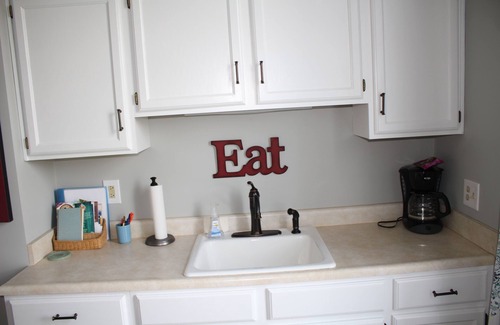 - Kitchen complete with stove, microwave, coffee maker, etc.