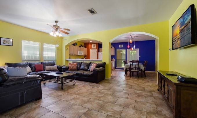Don't let the colorful walls throw you off. This home has a stylish atmosphere decked out with beautiful, quality furnishings. Located conveniently on the city's Northwest side, just 9 miles to either theme park; Sea World of San Antonio or Six Flags Fiesta Texas! Grocery stores in the area and quick access to major highway's make getting around town a cinch. Other popular venues nearby include the Northside Natatorium and the National Shooting Complex on Roft Rd.