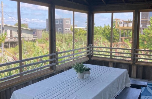 Elevated two-story beach house with gorgeous views of Great South Bay and a quick walk to miles of Atlantic Ocean beaches! Plenty of room for 1-2 families to relax and enjoy the beauty of Davis Park. Large screen porch plus three decks. Open floor plan with living room, dining room, and kitchen area with all kitchen appliances. Home features 6 bedrooms, 2 bathrooms, fireplace, outdoor shower, propane BBQ grill plus washer and dryer. Heat and air conditioning in each bedroom and the great room. Head to the ocean for sun and surf, to the Casino Bar for some refreshment, or walk the nature trail to Watch Hill Fire Island National Seashore.