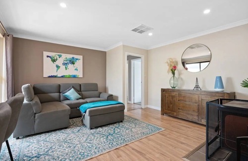 This home is newly renovated, stylish, spacious and comfortable. Featuring 3 bedrooms & 2 bathrooms. TVs are available in each room with a 70inch in the main living room. A double shower, spa bath and complimentary salts add to the luxurious feel of this lovely home. A large kitchen with a coffee machine, a variety of pods, tea, snacks, treats, & soft drinks are supplied.