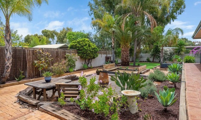 The front yard has a large grassed area, and the back yard is well prepared to suit all tastes with a family Webber bbq.