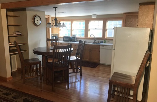 Hardwood floors and a knotty pine bedroom complement this historic building. Large fully equipped modern kitchen with seating for six. The private second floor apartment in the heart of Leland has dedicated parking next to Fishtown and the Harbor. Walk to Fishtown, grocery stores and fine dining restaurants and a very short walk to two public beaches