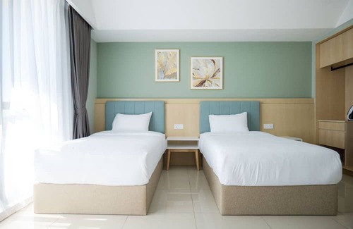 The 2 bedroom standard suite is spacious & elegant apartment at high floor with open city view, accessible by elevator , whole unit is cozy fully air conditioning & fan, fully furnish with kitchenette, utensil, stovetop, microwave, freeze, Flat screen smart TV, hot & warm water filter system, safety deposit box, free parking and free wifi.