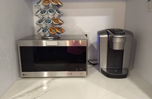 Cook a gourmet meal in the fully stocked kitchen. Complete with Kitchen Aid mixer, crock pot, gas stove, and Keurig coffee maker with coffee.